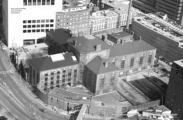 Do you remember the blog post titled: The Chicken Box – Historic Bar List? Well, this week we found another historic bar only a hop-skip-and-a-jump away! The Alibi Bar in Boston’s historic hotel The Liberty is located at 215 Charles Street, Boston, MA. The luxury hotel was originally built in 1851 as a jail, which housed several notable Boston prisoners (Malcolm X, James Michael Curley, and more) during the 120 years during which it actively functioned as the The Charles Street Jail. It was built by one of the most prominent (at the time) Boston architects Gridley James Fox Bryant and Reverend Louis Dwight a penologist. The granite building was built in a cross shape and included large arched windows. The interior included a 90 foot high octagonal rotunda in the center of the jail and was connected to four wings, which housed a total of 220 prison cells.